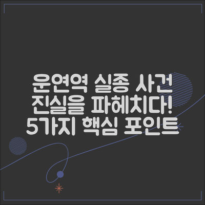 운연역 실종 사건은 많은 이들에게 불안감을 줍니다. 특히 가족이나 친구가 실종되어 소식이 없는 경우, 그 걱정은 이루 말할 수 없을 것입니다.