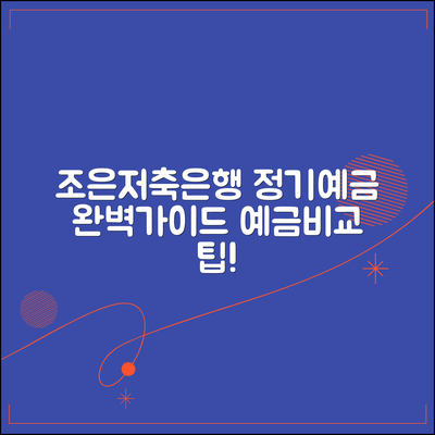 - 금리 비교: 조은저축은행이 제공하는 정기예금 상품의 금리를 다른 금융기관과 비교해보세요. 원하는 조건에 맞는 상품을 찾는 것이 좋아요.